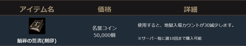 ※贖罪の誓書は「名誉コインショップ」で購入可能です。