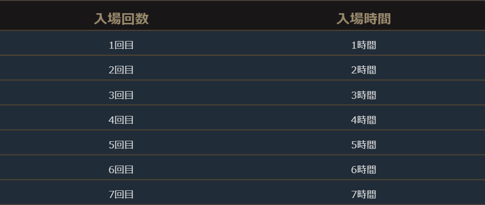 地獄ダンジョンの入場時間は地獄に入場した回数とともに増加していきますので、気を付けましょう。