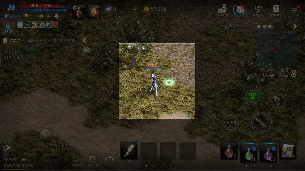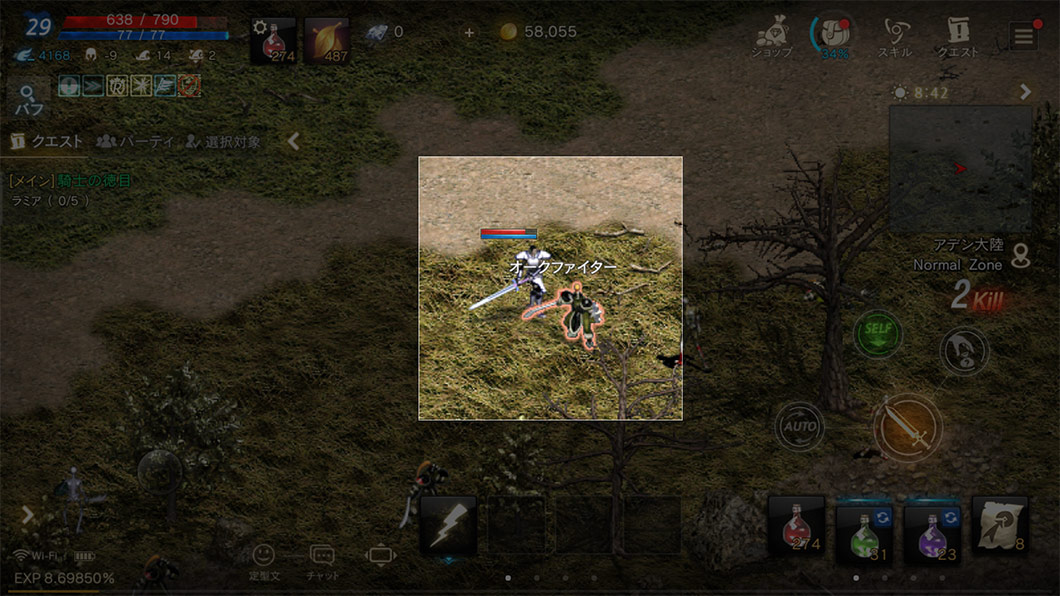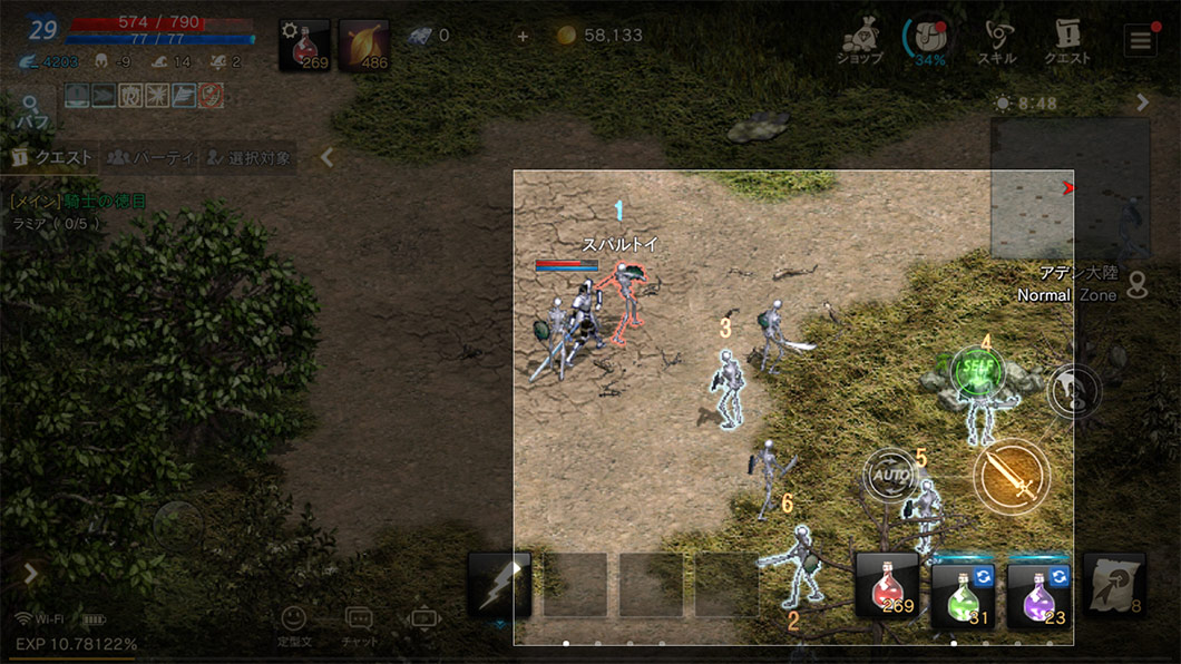 AUTOボタンを有効にするかモンスターをタップして攻撃ボタンを使用すると攻撃できます。