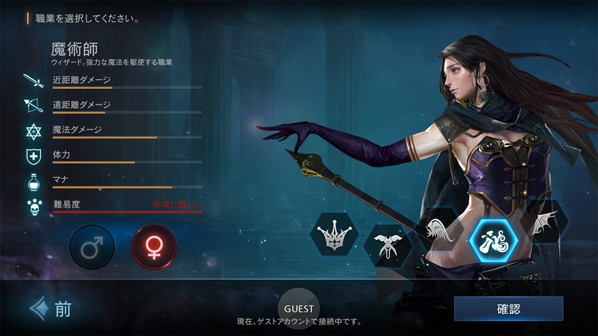 魔術師は、攻撃魔法と物理攻撃を適切に使い分けてプレイする職業です。INTとSPが他の職業に比べて高めやすく、魔法の効果が優れています。しかし、最大HPが低いことや、着用防具に制限が多く、ACを高めることは難しくなっています。