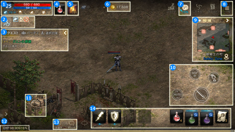 ⑩自動攻撃(AUTO)・手動攻撃・セルフスキル・アイテム取得