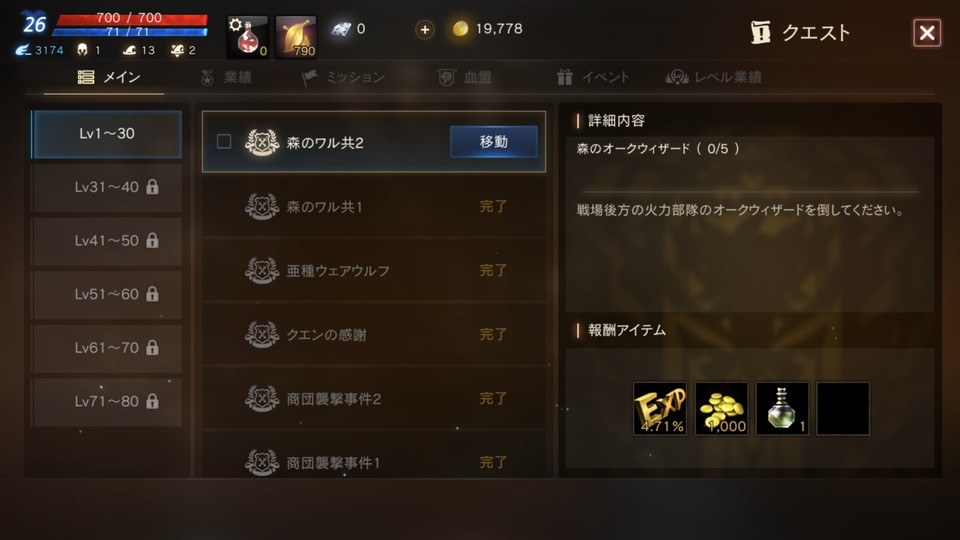 レベルを上げるための手段としてオススメなのが、クエストを進めることです!