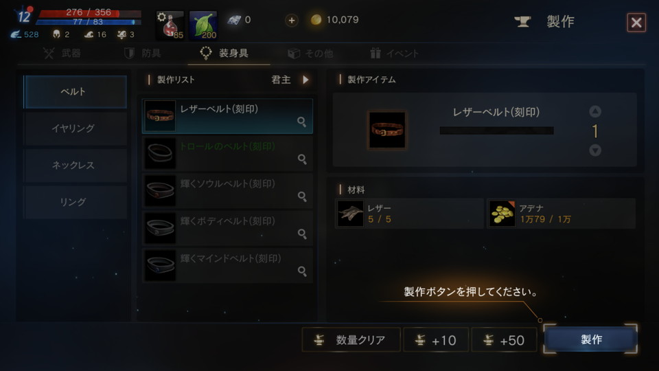 製作で手に入れたいアイテムがある場合は、素材の確認をしてみましょう!