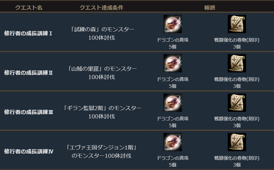 「修行者の書簡Ⅰ~Ⅳ」を使用すると専用クエストを受注できます。