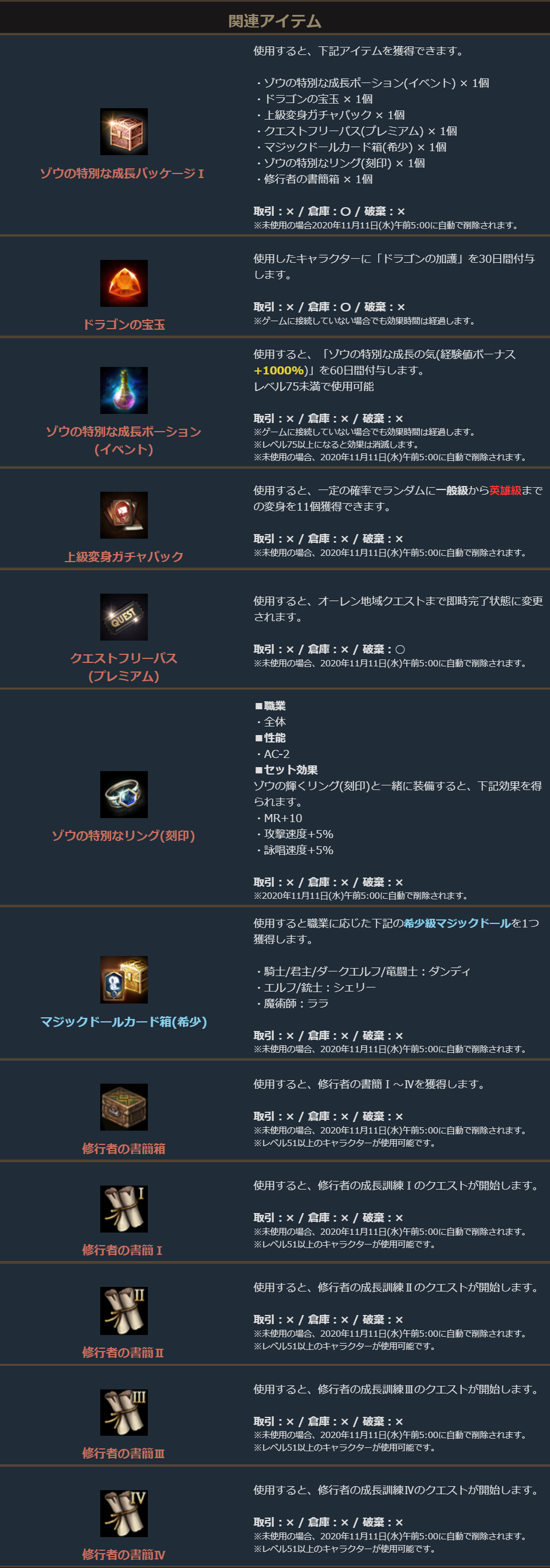 ※一部アイテムは未使用の場合、一定期間が経過すると自動で削除されます。詳しくは各アイテムの詳細をご確認ください。