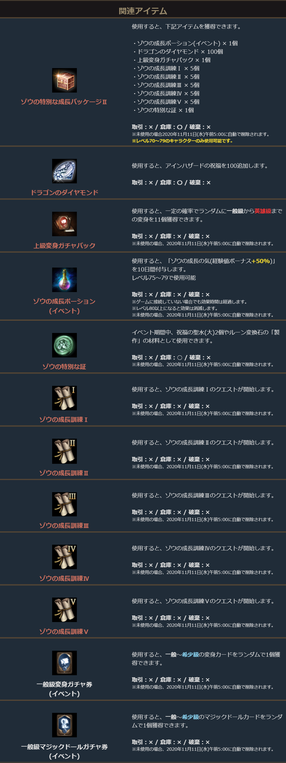 「ゾウの特別な成長パッケージⅡ」は、レベル70~79のキャラクターのみ購入可能です。
