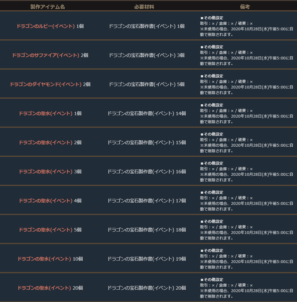 また、「ドラゴンの宝石製作書(イベント)」を材料として、アインハザードの祝福追加アイテムの製作を行うことができます。