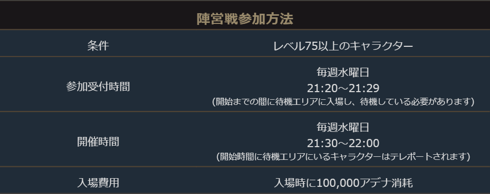 陣営戦は毎週水曜日の21:30~22:00の間に行われます。