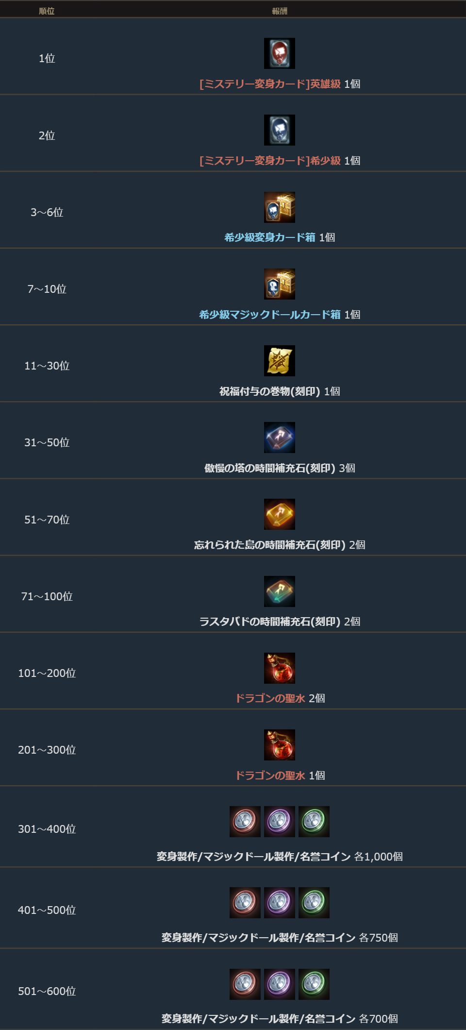 ・ランキング報酬