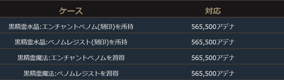 「エンチャントベノム」と「ベノムレジスト」を統合に伴いスキルと黒精霊水晶が削除されました。