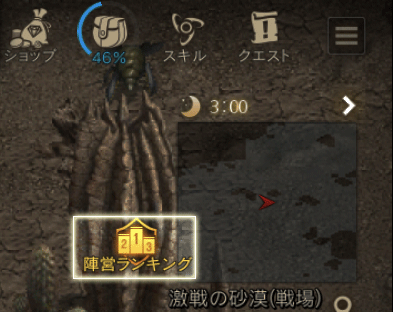 ・21:30になり陣営戦がスタートすると、激戦の砂漠(オアシス)から激戦の砂漠(戦場)へテレポートされます。