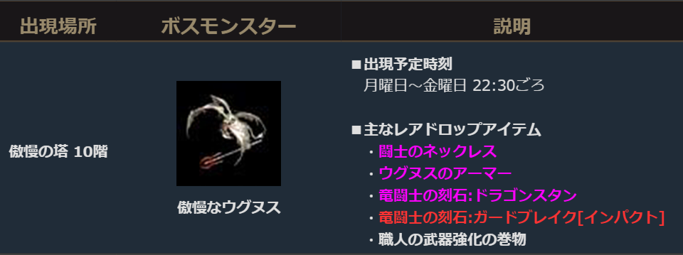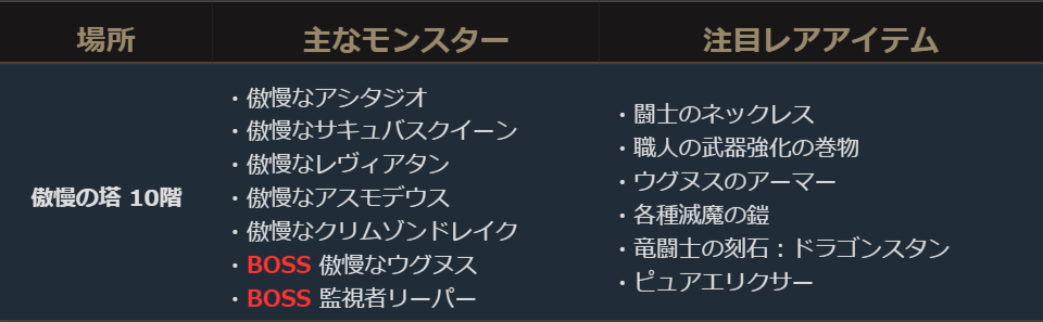 ▼傲慢の塔10階出現モンスター情報