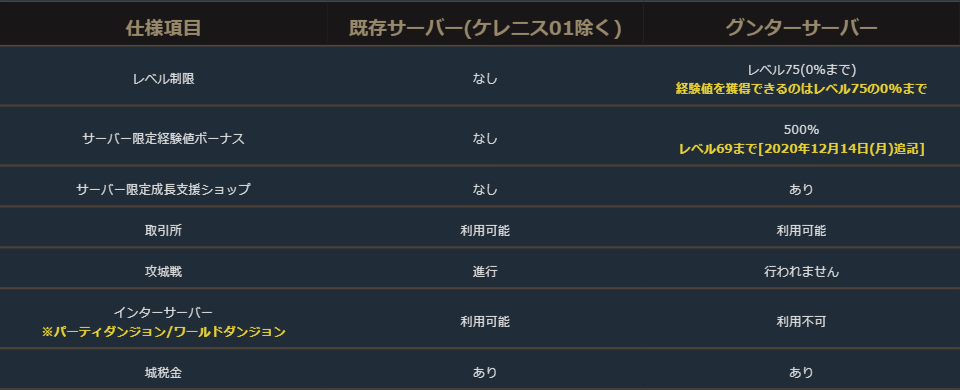 育成サーバーとしての役目を終えるため、特定レベル区間で付与されていた経験値バフやケレニス01サーバー限定で獲得出来ていたショップアイテムの獲得は出来なくなります。