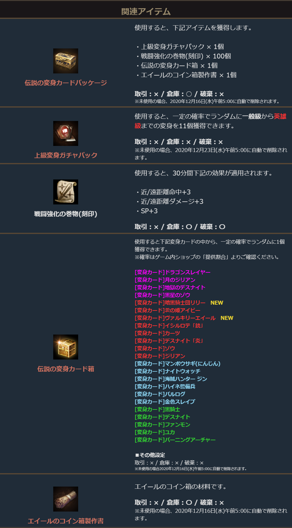 2020年12月2日より、ゲーム内ショップで「EP.3 DUAL FORCESアップデート記念 伝説の変身カードパッケージ」の販売を開始しました。