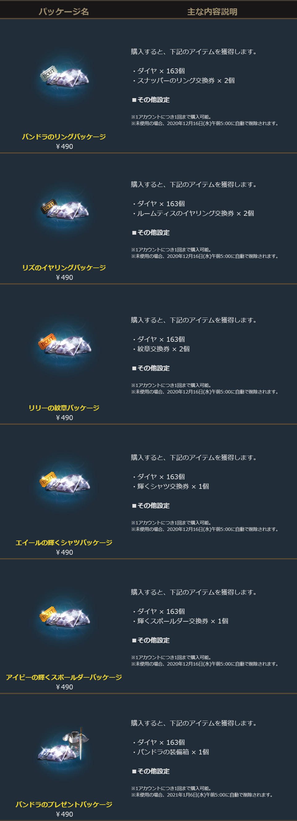 2020年12月2日より、ゲーム内ショップで「EP.3 DUAL FORCESアップデート記念 魅惑のパッケージ」の販売を開始しました。