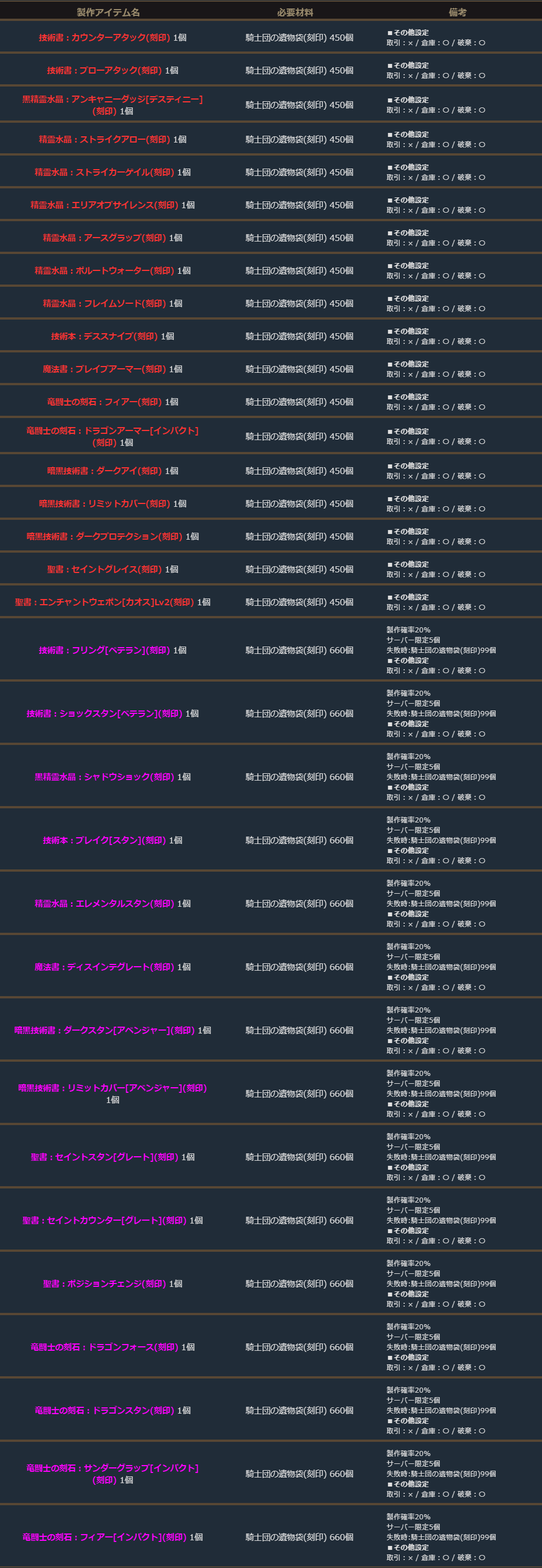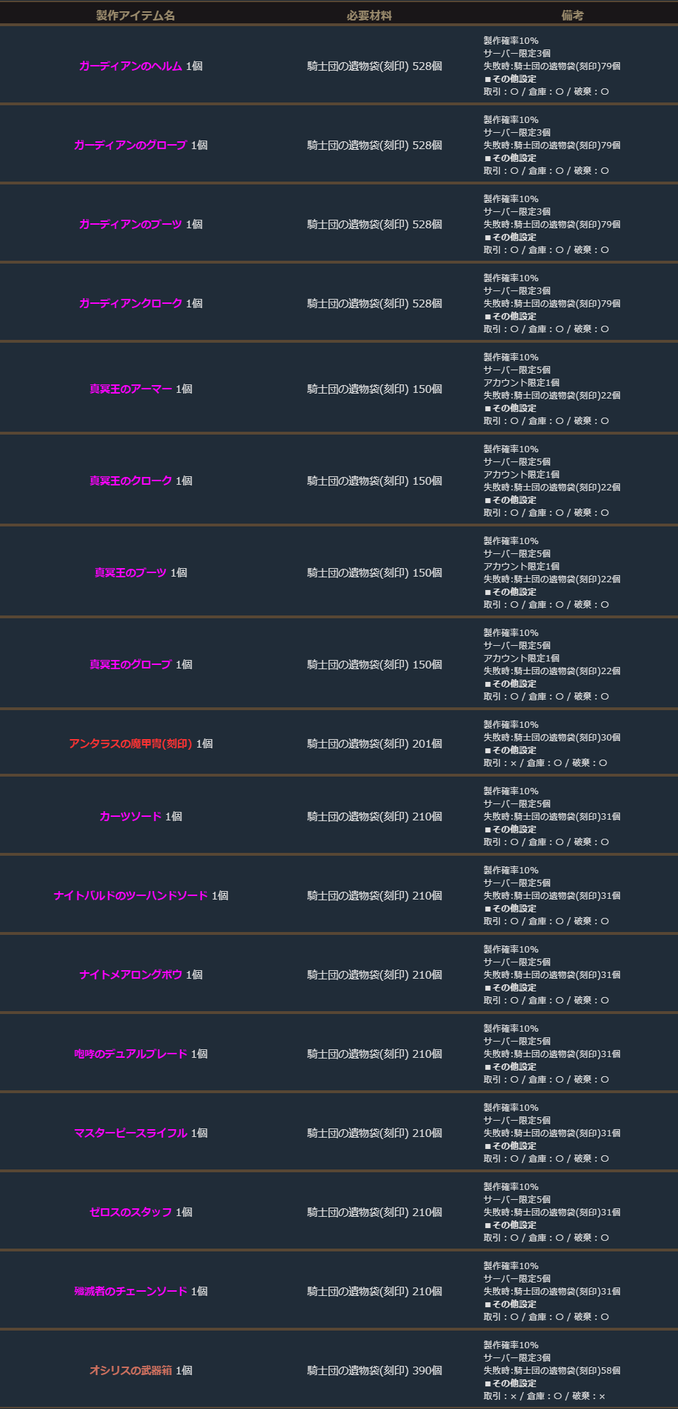 期間中、「騎士団の遺物袋(刻印)」を使用して製作を行うことができます。