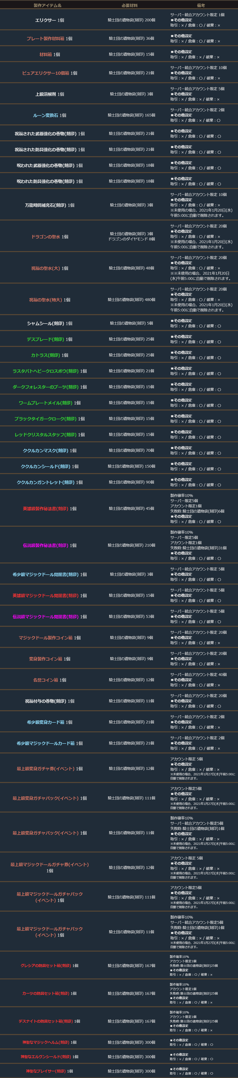 ※期間限定の製作アイテムは、製作可能期間のみゲーム内の「製作」より製作することができます。