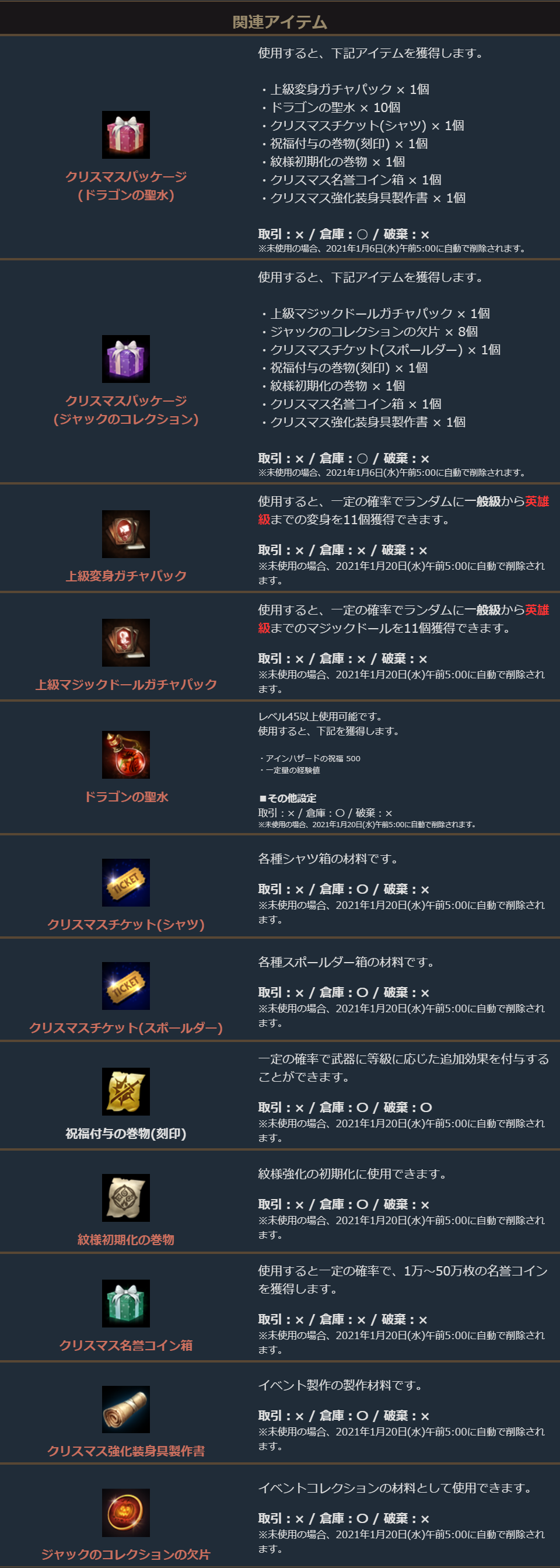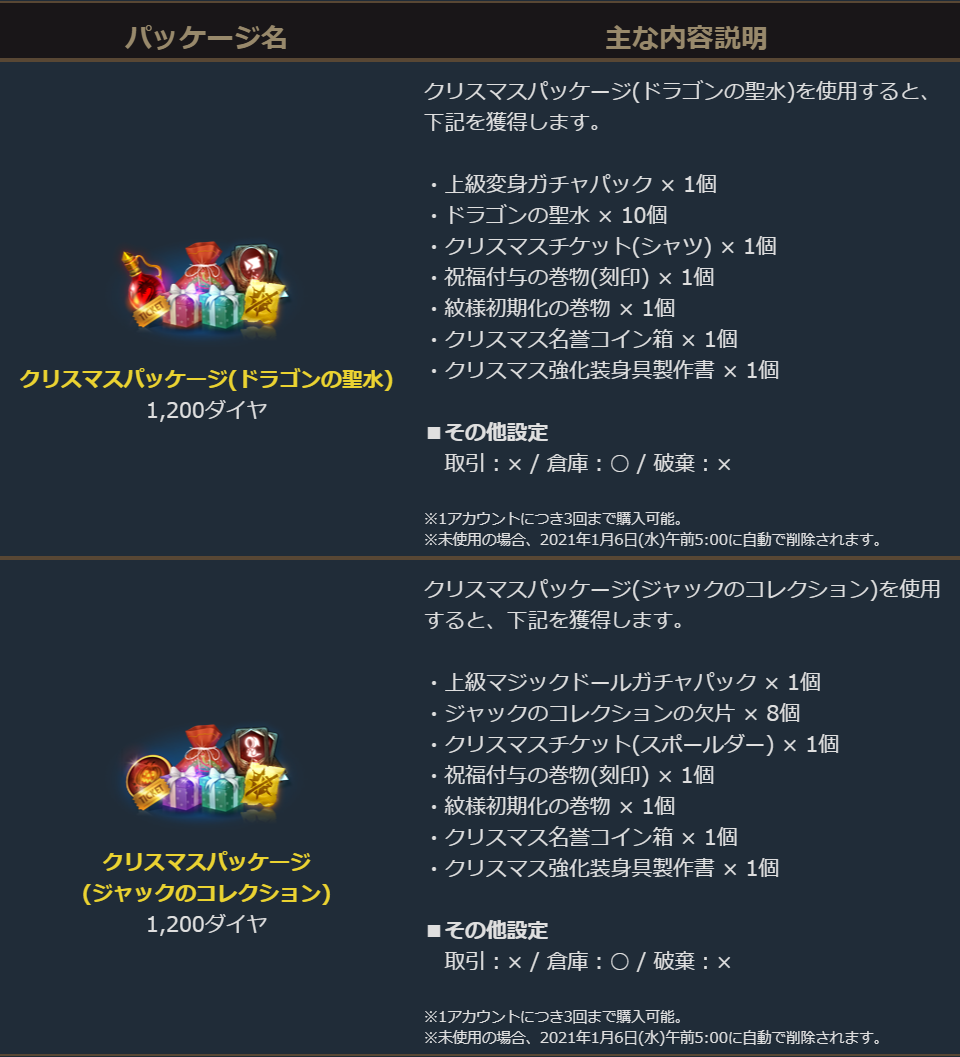 2020年12月23日より、ゲーム内ショップで「クリスマスパッケージ」の販売を開始しました。