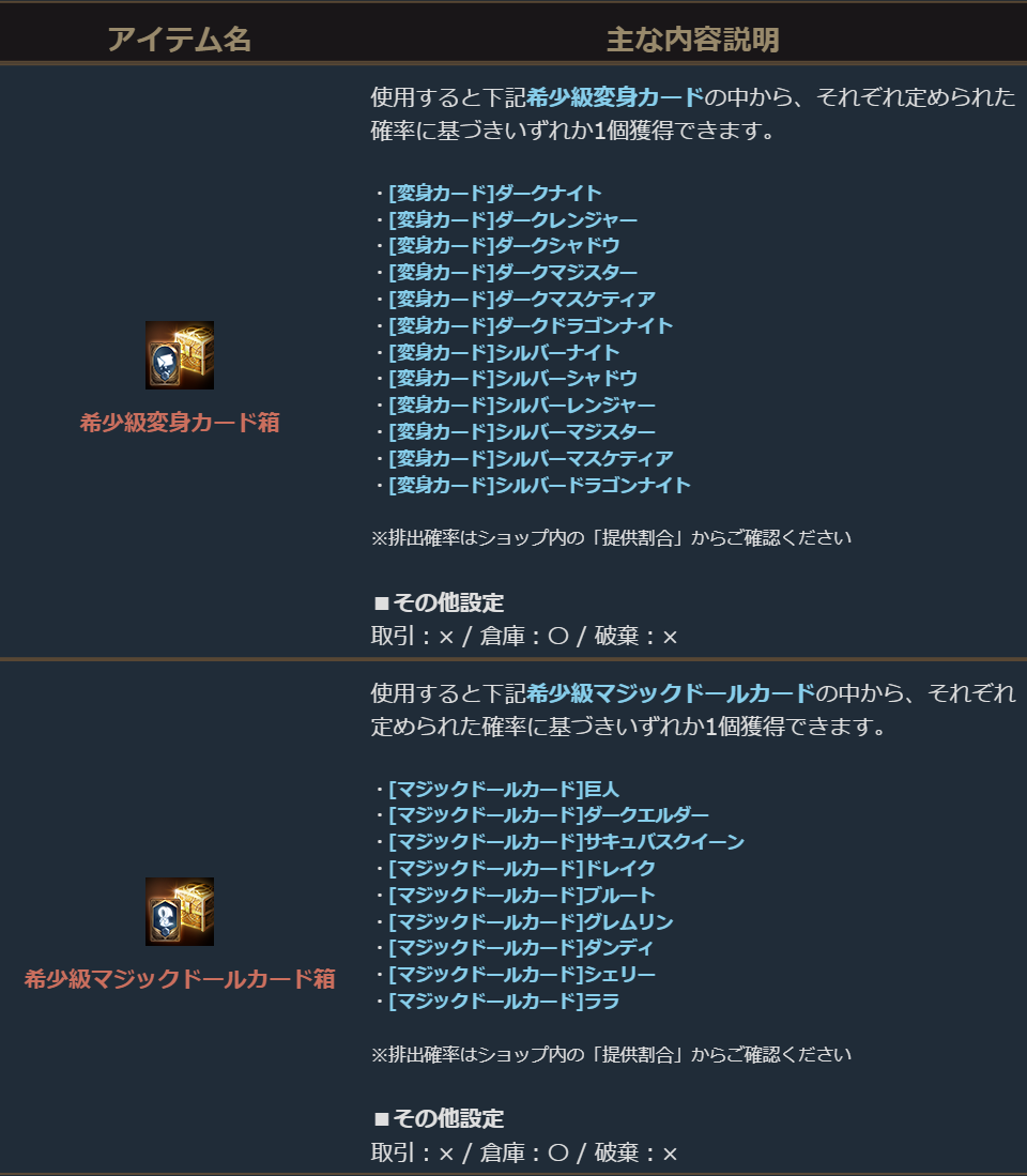 ※一部アイテムは未使用の場合、一定期間が経過すると自動で削除されます。詳しくは各アイテムの詳細をご確認ください。