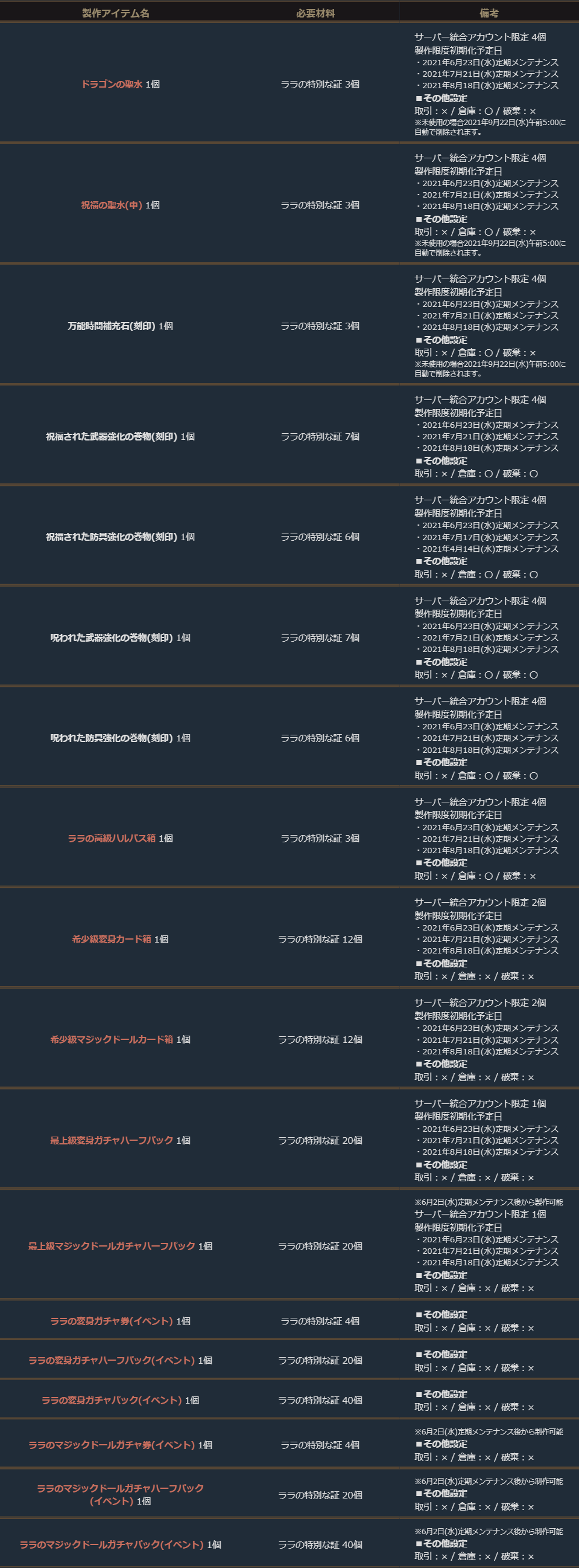 製作可能期間:2021年5月26日(水)定期メンテナンス後~2021年9月22日(水)定期メンテナンス開始前