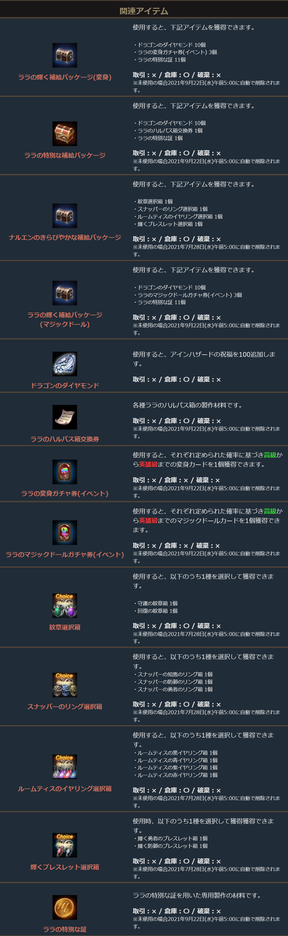 商品リストにララの輝く補給パッケージ(マジックドール)を追加しました。