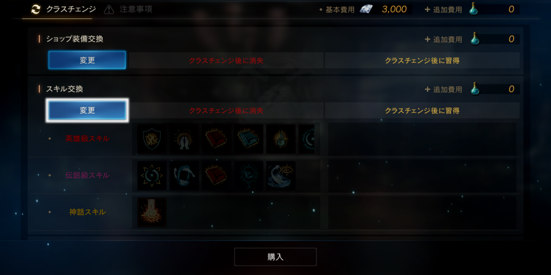 クラスチェンジは、アカウントごとに1回のみ購入可能です。