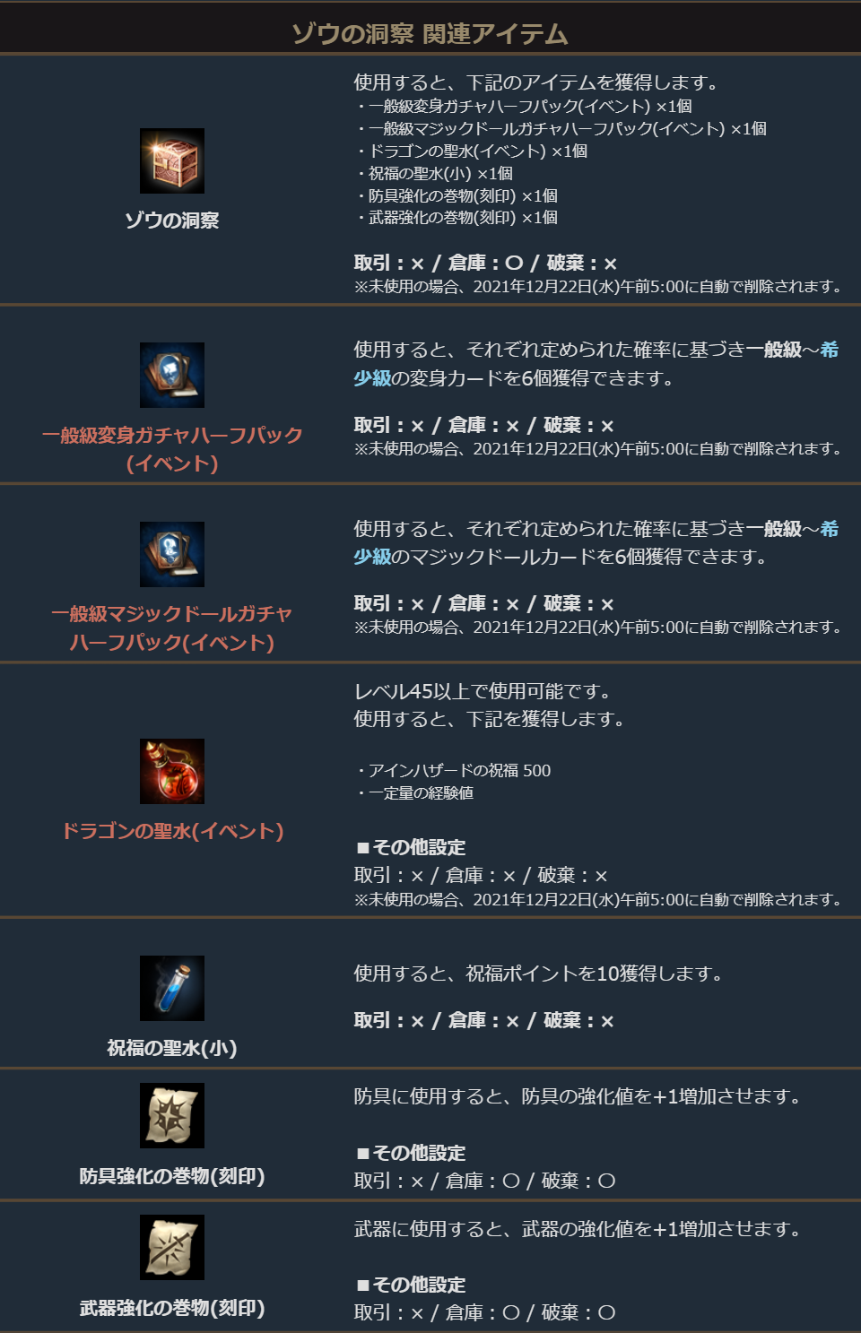アップデートに合わせて復帰された方や、これから装備を整えたりレベルを上げたいと考えている方にぴったりの内容となっております!