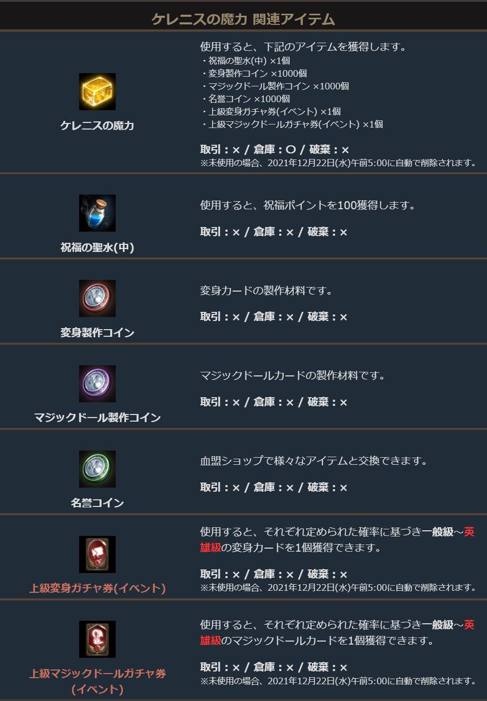 イベント期間中、毎日午前5時にキャラクターの育成に役立つアイテムセットをゲーム内郵便にてお送りします。