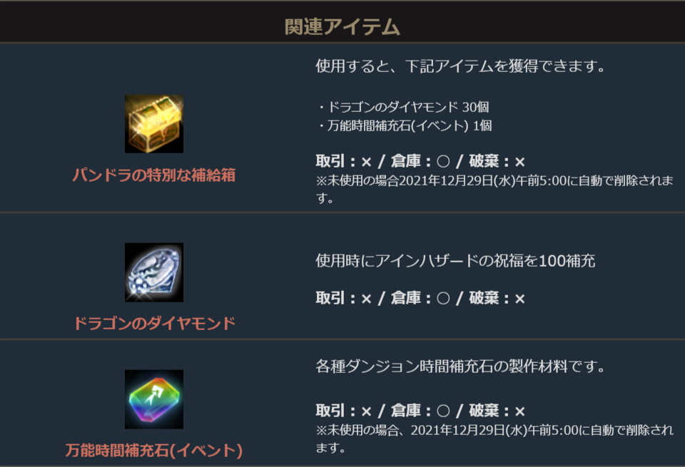2021年12月8日より販売を開始しました「パンドラの特別な補給箱」に関しまして、ご案内を申し上げます。