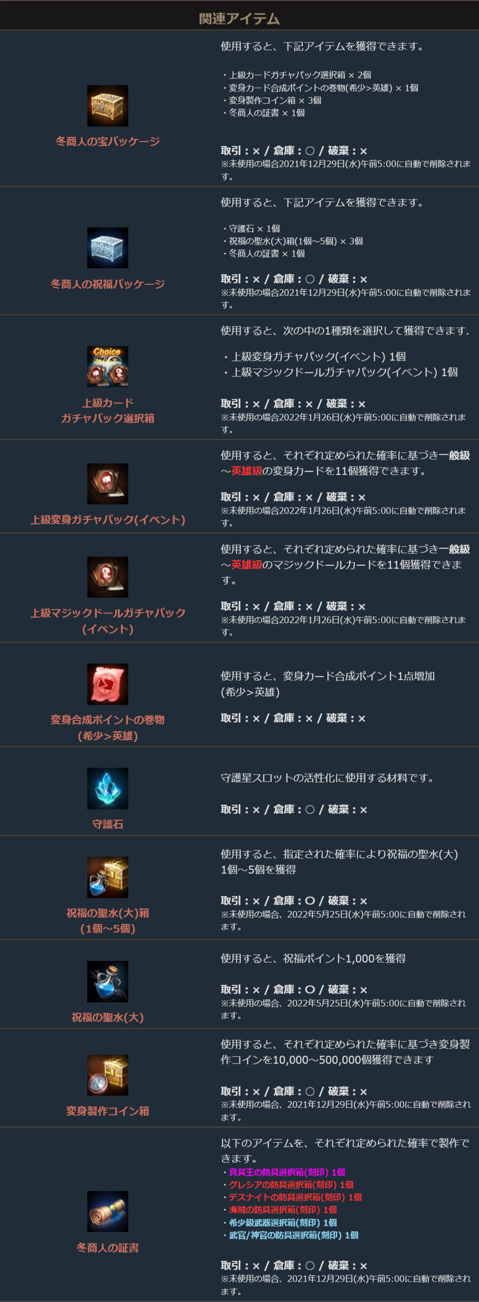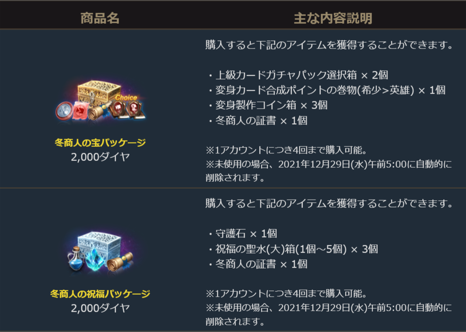 2021年12月15日より販売を開始しました「冬商人の宝パッケージ」と「冬商人の祝福パッケージ」に関しまして、ご案内を申し上げます。