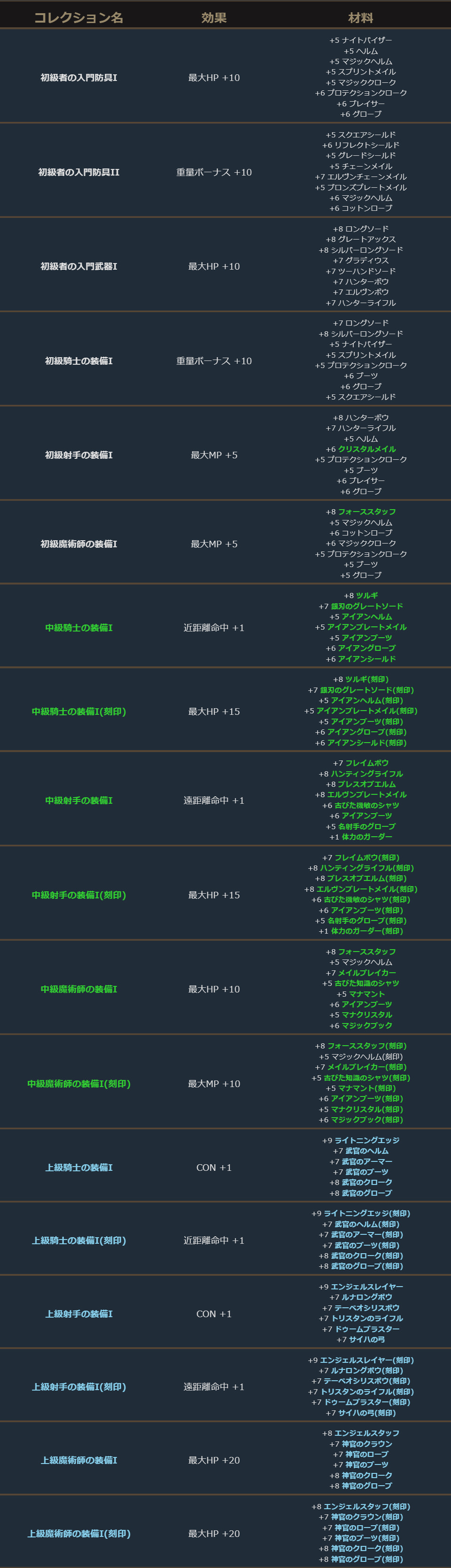 今回追加されたコレクションを完成させることで最大HP/MPや命中などが上昇します。