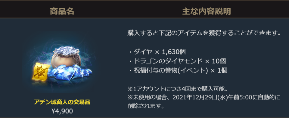 2022年12月22日より販売を開始しました「アデン城商人の交易品」に関しまして、ご案内を申し上げます。