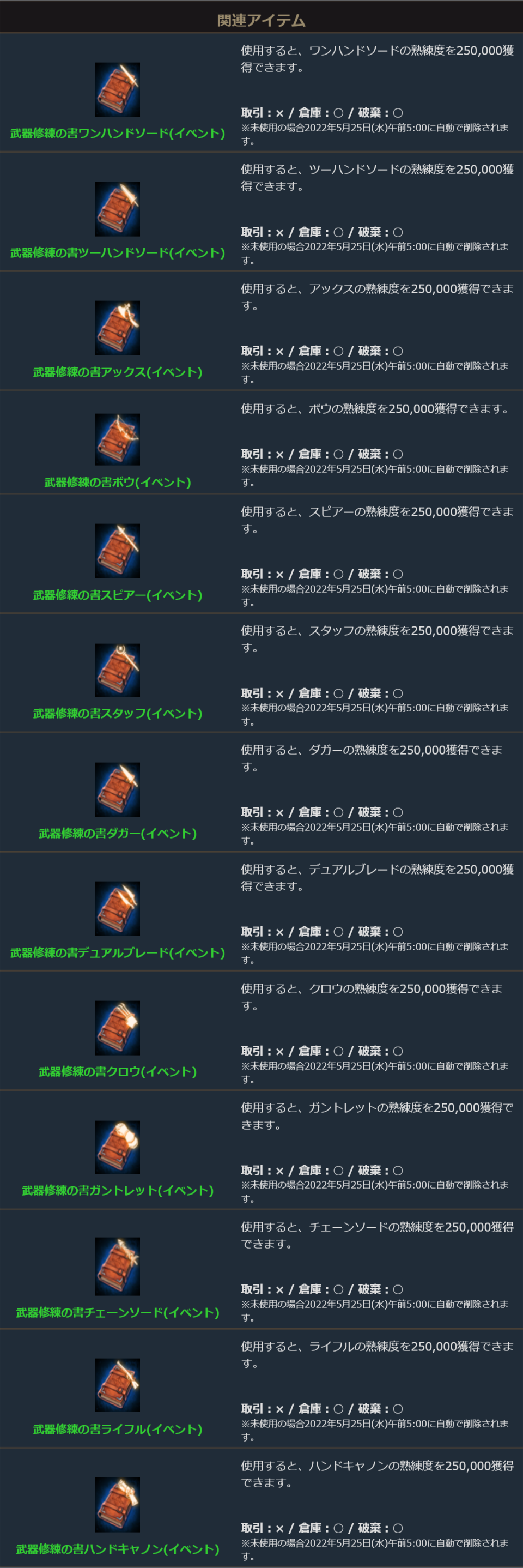※自動で削除された場合でもアイテムは使用したものとして扱われます。