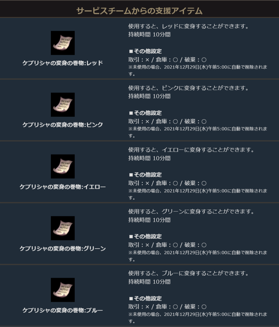 ・イベントアイテム「超異世界の証」を獲得したアカウント内の全サーバーで最もレベルが高いキャラクターに下記の報酬がプレゼントされます。