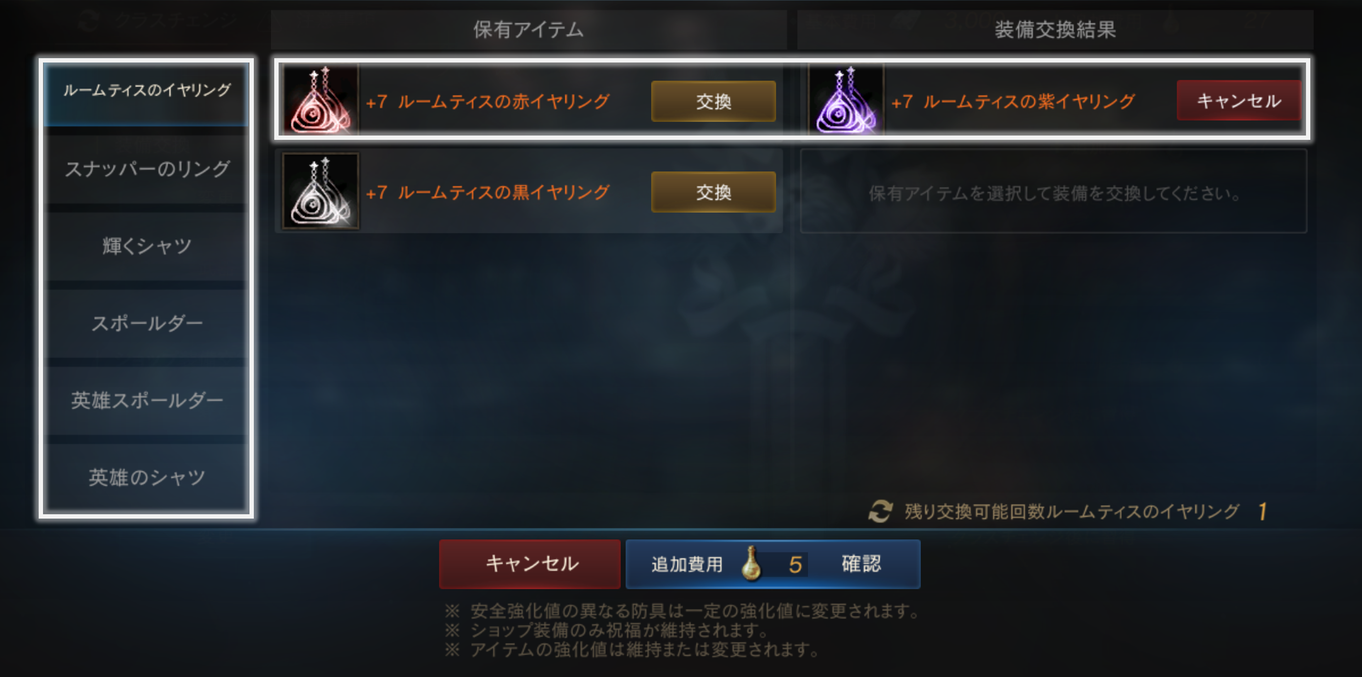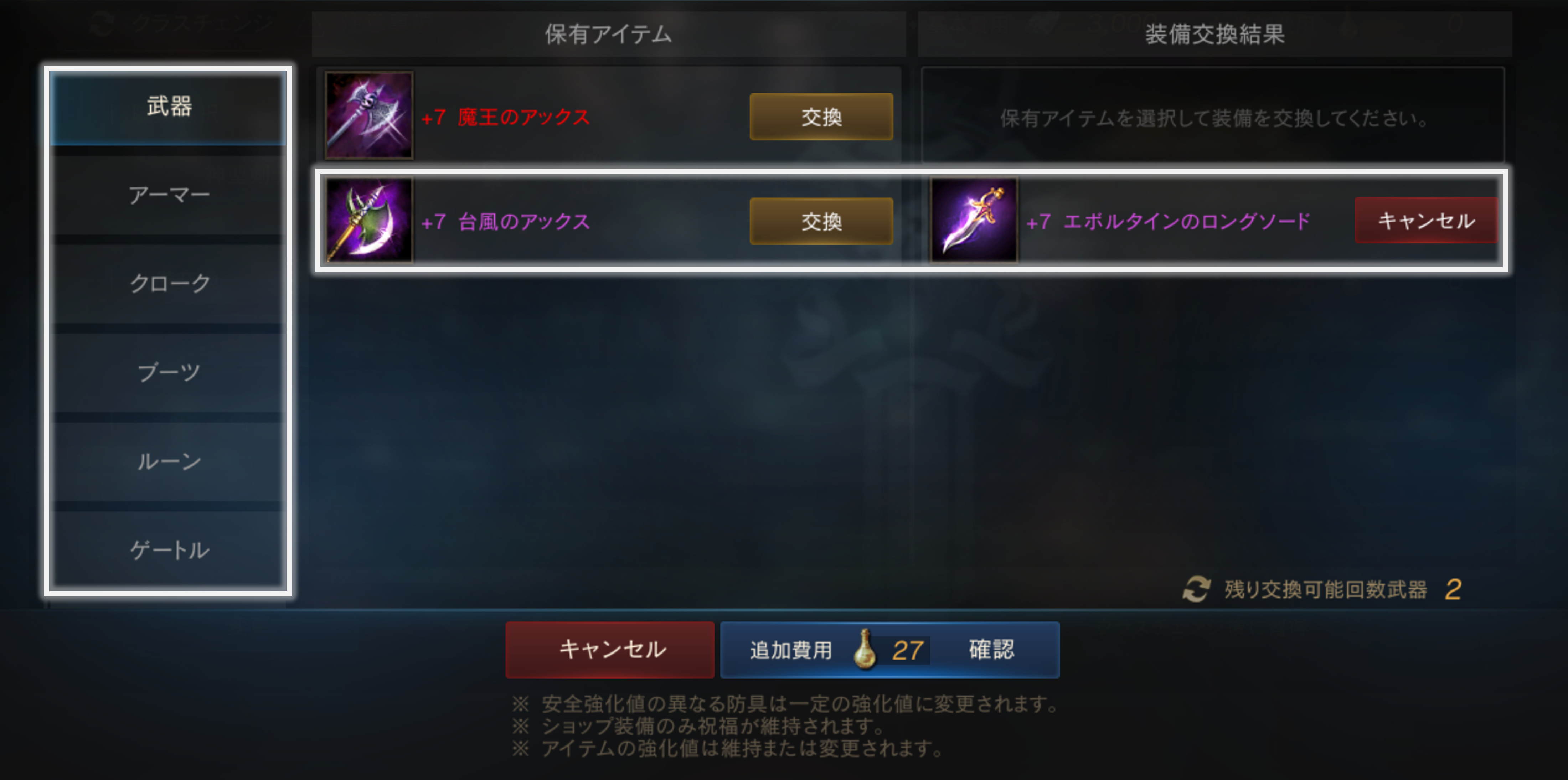 ※【ご注意】本項目で装備の交換を行わない場合、後から交換することは出来ませんので必ず忘れないようお願い致します。