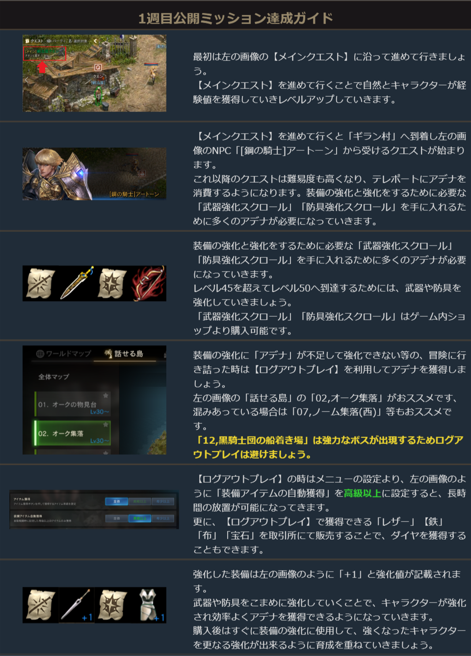 「2週目のミッション」の公開と「レベル55達成報酬」の紹介、動画で見るキャラクター育成の追加を致しました。