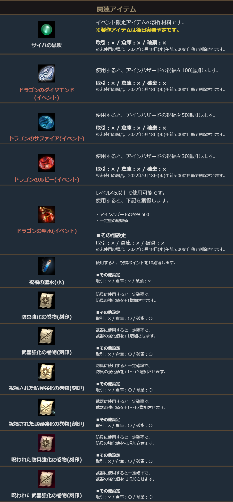 「ねじれたN次元」のモンスターからは各種強化の巻物やドラゴンのダイヤモンドなどに加えて、後日製作材料として使用できる「サイハの息吹」が入手できます。