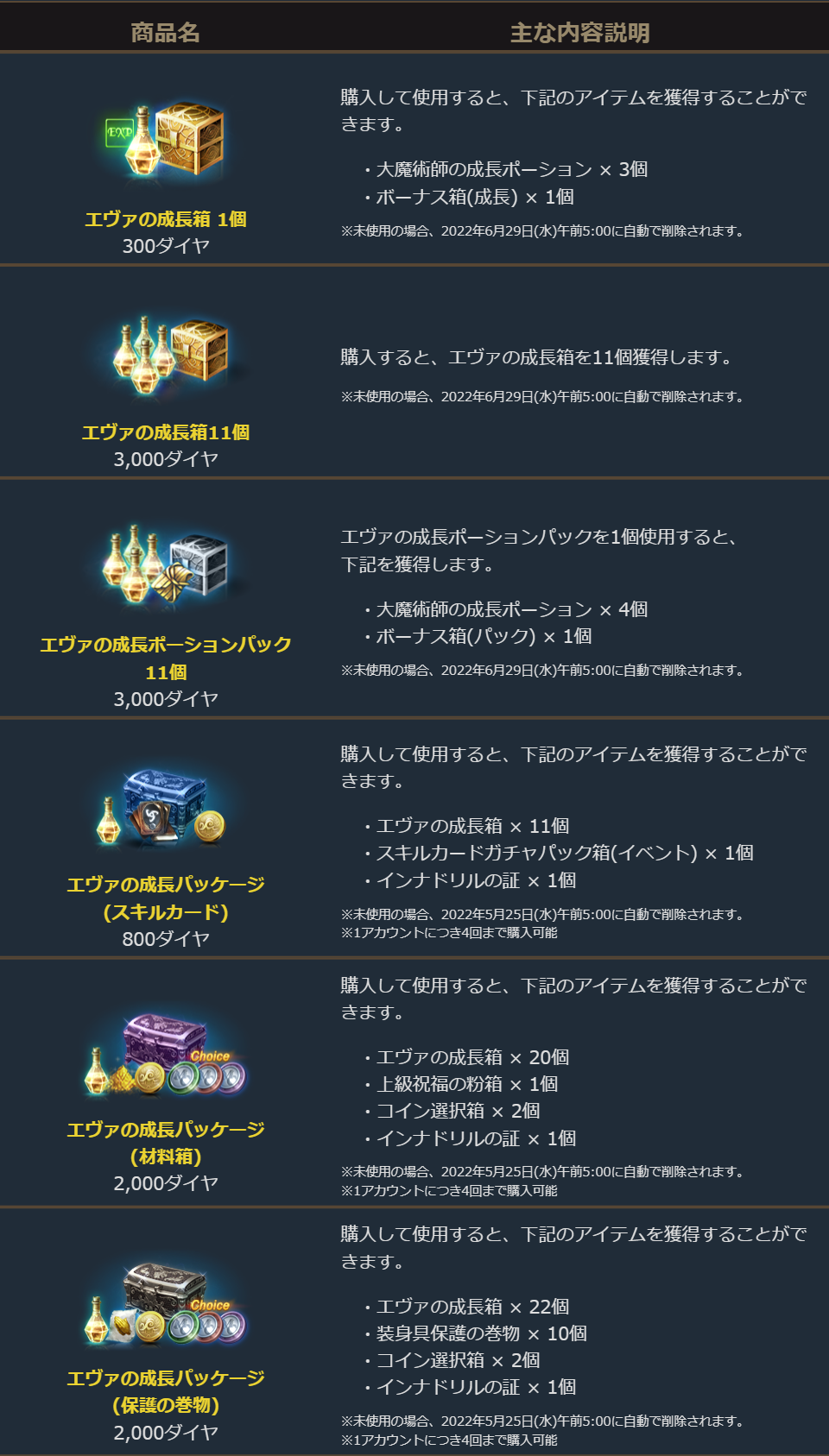 2022年4月27日より、ゲーム内ショップで「エヴァの成長箱」の販売を開始しました。