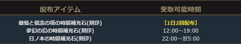 配布アイテムにはそれぞれ受け取り期限が設定されていますので、受け取り忘れのないようお気を付けください。