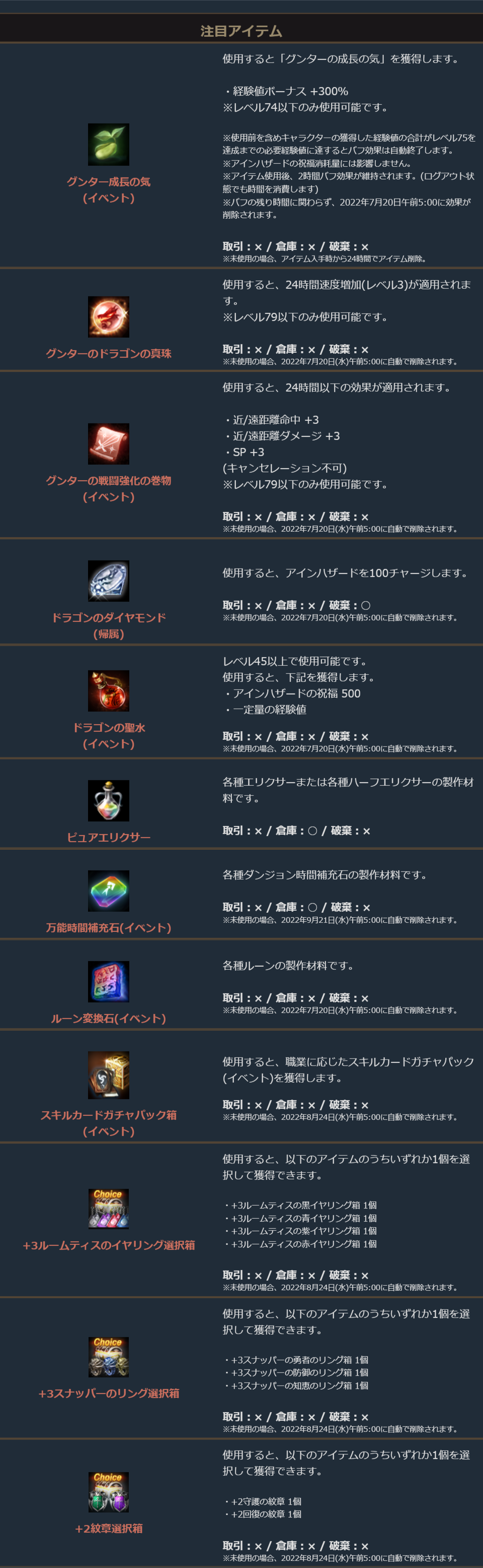 ※期間限定育成サーバー「グンター」のキャラクター情報は、2022年7月20日(水)メンテナンス時に全て削除いたします。