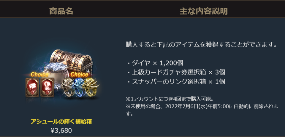 2022年6月2日より販売を開始しました「アシュールの輝く補給箱」のご案内を申し上げます。