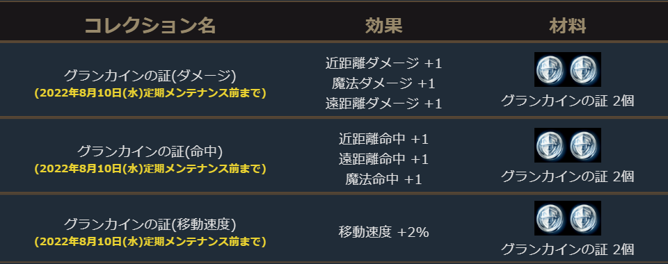 コレクション登録から2022年8月10日(水)定期メンテナンス前まで
