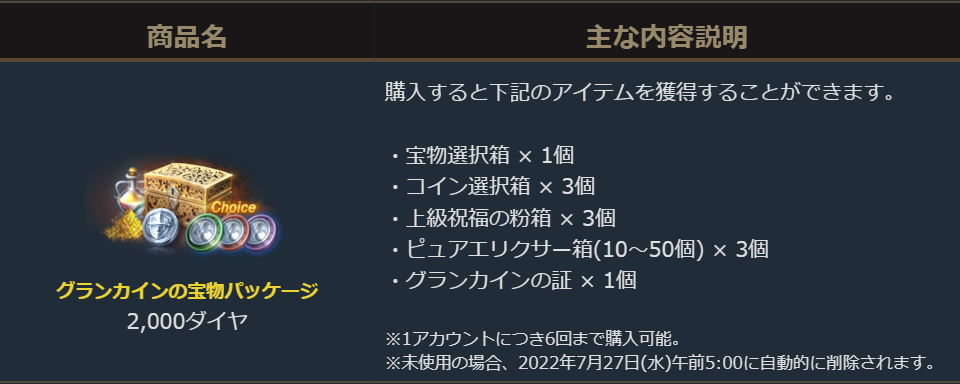 2022年7月6日より販売を開始しました「グランカインの宝物パッケージ」のご案内を申し上げます。