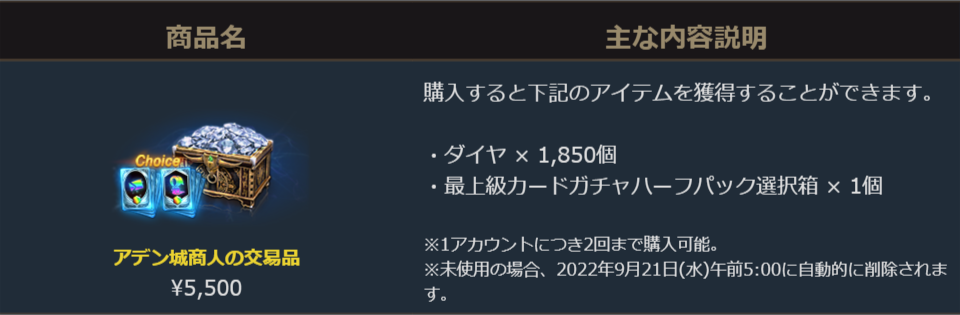 ダイヤと最上級カードガチャハーフパック選択箱がセットになったお得なパッケージです。
