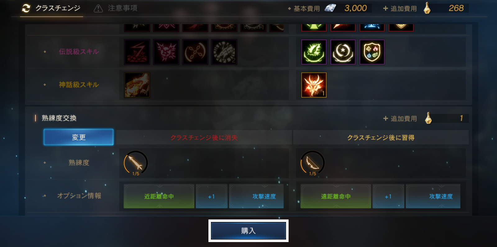クラスチェンジは、血盟君主とクラスチェンジ先と同一の職業を除くレベル75以上のキャラクターで購入することができます。