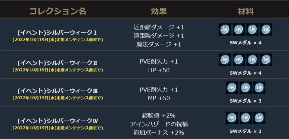 「SWメダル」はイベント専用の期間限定コレクションの材料として使用が可能になります。