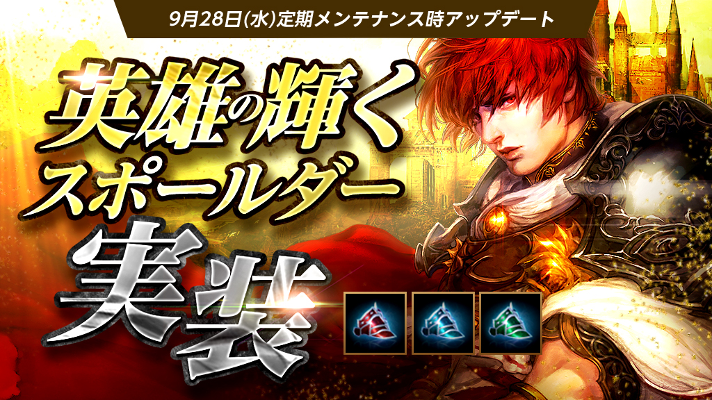 新たなるスポールダーアイテム、「英雄の輝くスポールダー」を各種実装致しました。