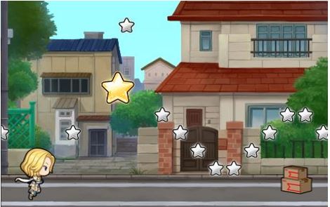 強制スクロールのステージで神聖剣士を操作して障害物を避けつつ「☆」や「マジックドール」を集めて高得点を目指そう!