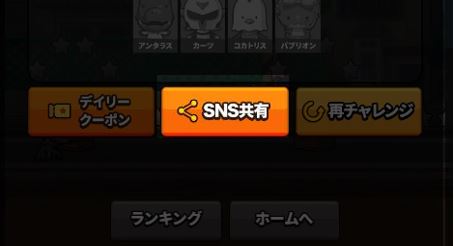 ゲーム結果を「SNS共有」ボタンからTwitterにシェアすることができます。
