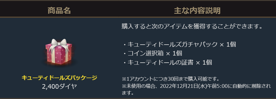2022年11月23日より販売を開始しました「キューティドールズパッケージ」のご案内を申し上げます。